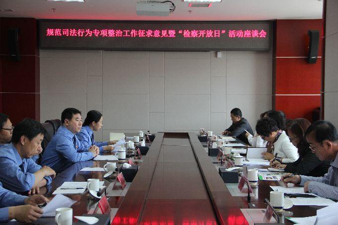 5月21日上午,13名社会各界人士走进乌海市检察院,参加了市检察院举办的规范司法行为专项整治工作征求意见座谈会暨“检察开放日”活动。参会人员有来自社会各领域、行业的7名市人大代表、6名市政协委员,市检察院班子成员及规范司法行为专项整治工作领导小组办公室工作人员参加了座谈会。