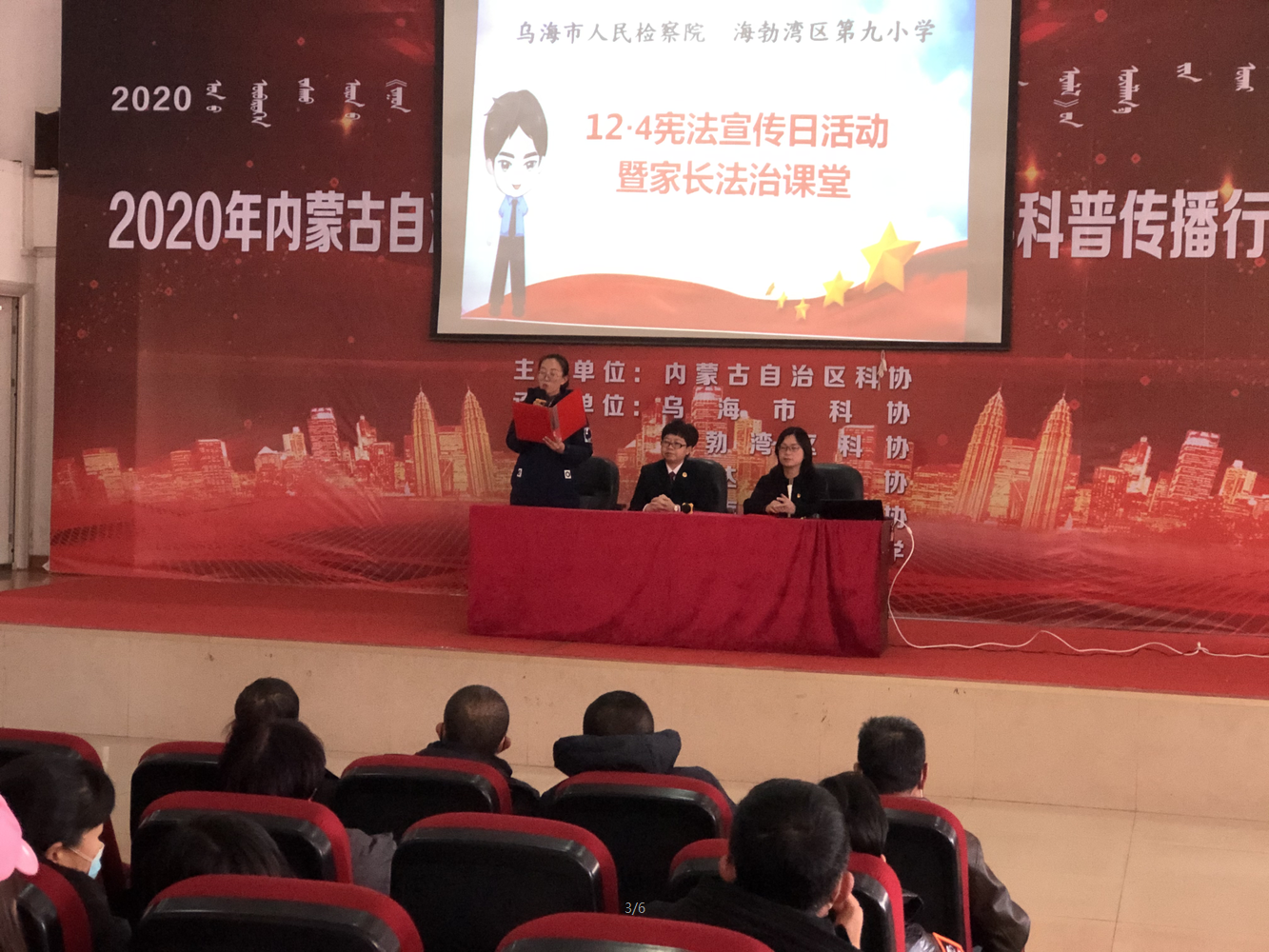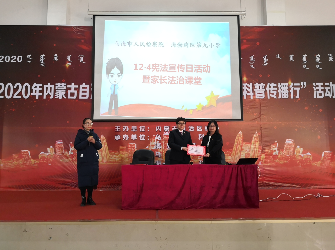 为更好地发挥家庭在未成年人保护方面的基础作用,进一步推动“一号检察建议”在家长监护过程中有效落实,12月2日,乌海市人民检察院第六检察部主任张利走进海勃湾区第九小学,针对学生家长开展了法治宣讲活动,同时受聘为该校校外家长课堂法治副校长,170余名老师和家长聆听了讲座。