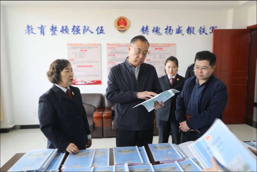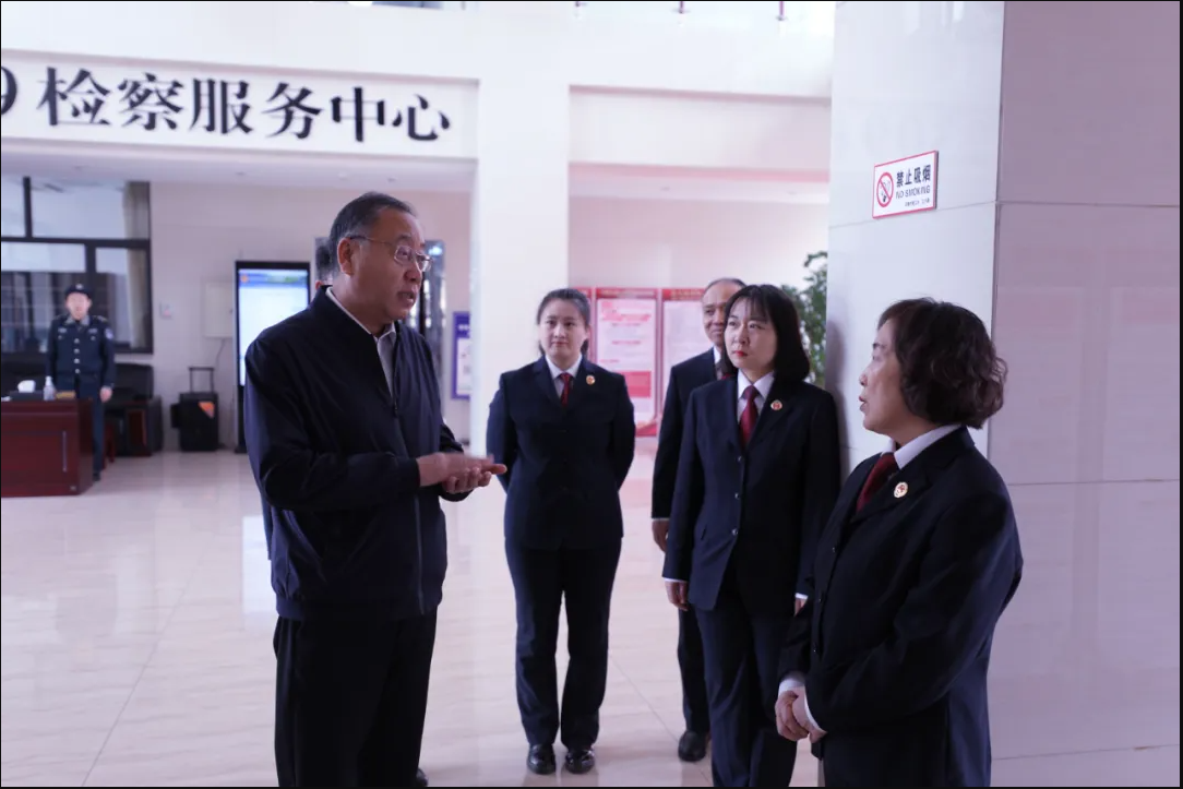 调研中,田成君检察长一行实地查看了12309检察服务中心,与服务窗口的检察干警深入交谈,认真了解服务人民群众的具体举措和成效。在教育整顿办公室,仔细查看了相关档案材料,对存在的短板不足提出加强和改进的意见建议,对好的经验做法要求两级院学习推广。