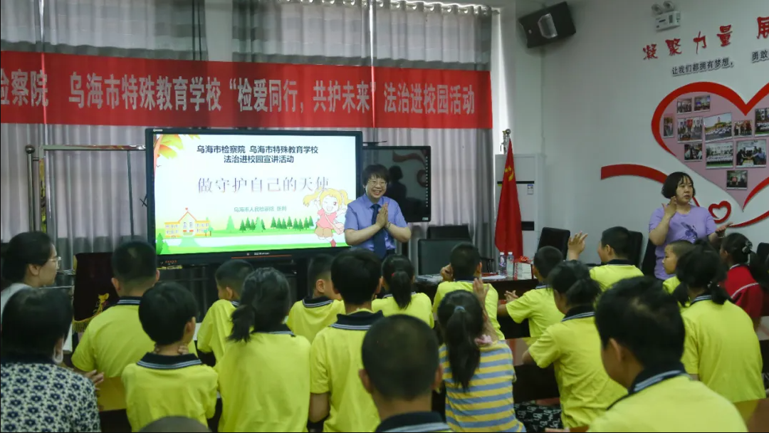5月25日,市检察院第六检察部主任张利走进乌海市特殊教育学校,受聘为该校法治副校长,以“做自己的守护天使”为主题,为校内100余名可爱的孩子,讲授了一节生动的法治课。