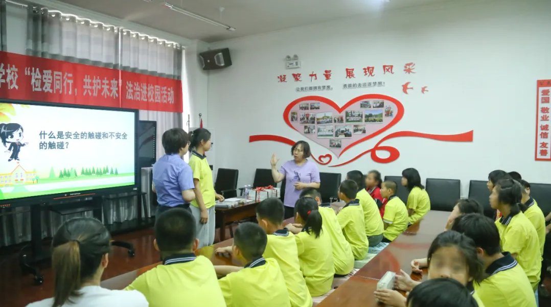 面对这群可爱的孩子,检察官让自己也变成小孩,用加倍的爱心和耐心,用丰富的肢体动作、浅显易懂的语言与孩子们积极互动。让孩子们了解自己身体的小秘密,分辨哪些行为是安全的触碰,哪些行为是性侵害行为,以及遇到侵害时该怎样寻求帮助。同时,还向孩子们介绍了校园欺凌的表现形式及危害,告诫孩子们遭遇校园欺凌时要及时向家长、老师求助,并且要学会自我管理,坚决不做施暴者。