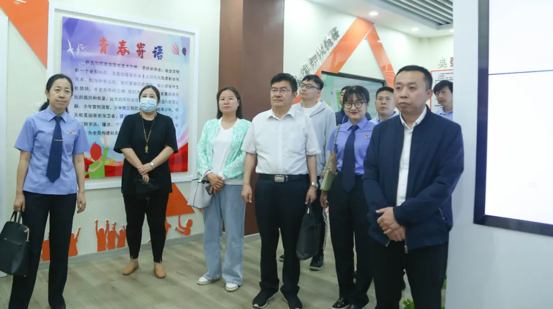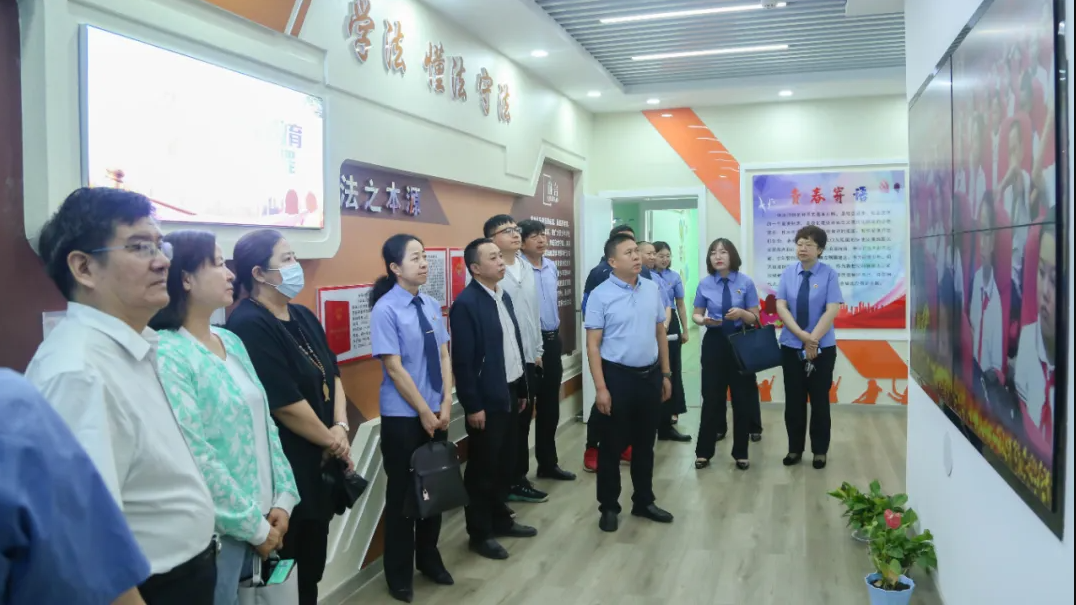 5月31日,市检察院邀请市教育局、市民政局、市妇联、团市委、关工委、人大代表、政协委员、教师代表、家长代表共10余人,赴海南区人民检察院参观“未检法治教育基地和一站式取证中心”,通过请进来的方式,让更多人了解未成年人检察工作。市院党组副书记、副检察长撖莉,市区两级院全体未检干警全程参加。