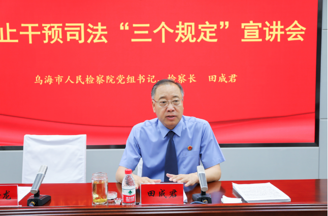 6月23日上午,乌海市人民检察院党组书记、检察长田成君,为市审计局等14家市直机关的领导班子成员及环节干部开展防止干预司法“三个规定”大宣讲。市委政法委副书记常金龙主持会议,自治区政法队伍教育整顿第十一指导组周振林、王俊萍到会指导。