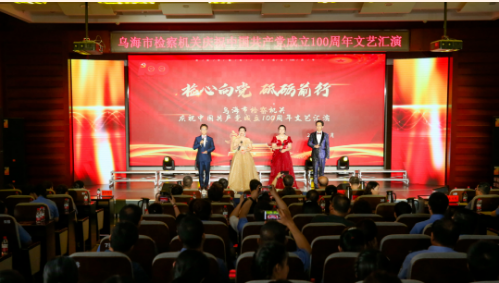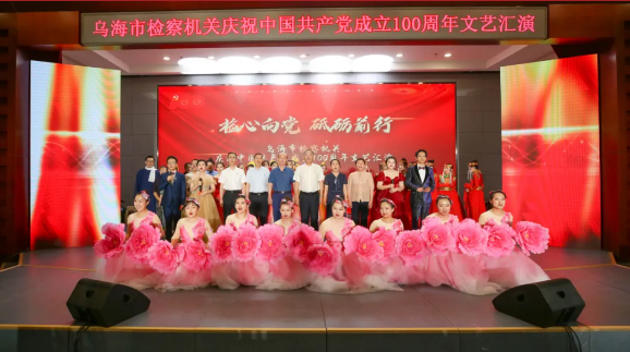 6月25日,乌海市检察机关庆祝中国共产党成立100周年文艺汇演在市检察院隆重举行,来自市区两级院的全体检察人员欢聚一堂,载歌载舞,生动表达了全体干警对党的崇高敬意、对检察事业的挚爱真情。市院党组书记、检察长田成君出席并致词,市直机关工委副书记兼纪检监察工委书记陈水霞、市委政法委四级调研员范文生应邀观看演出。