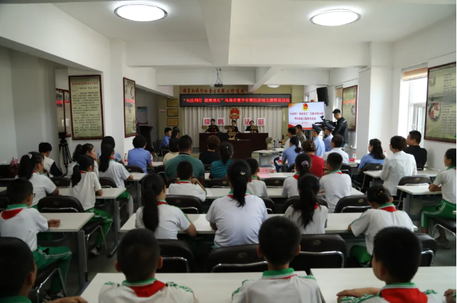 9月16日,乌海市人民检察院联合团市委在海勃湾区林荫街道海馨社区组织开展“与法同行,健康成长”青少年模拟法庭主题法治教育实践活动,60余名小学生参加了观摩活动,零距离接受法治教育,近距离体验庭审过程。