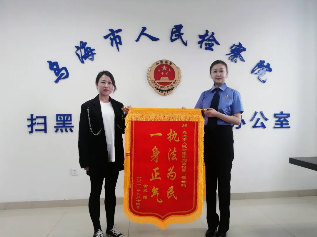 近日,一位被害人家属冒着濛濛细雨专程从巴彦淖尔市赶到乌海,将一面印有“执法为民,一身正气”的锦旗送到乌海市检察院第一检察部办案检察官手中,并感激的说:“感谢你为群众办实事,解决了我的烦心事!”