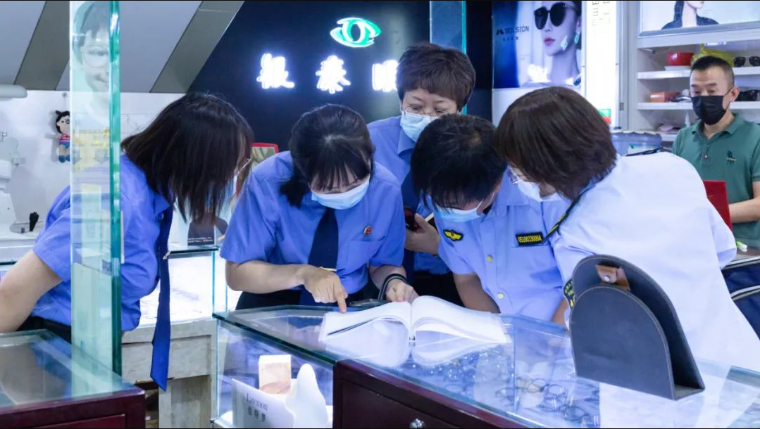 为切实保护未成年人权益,市检察院、市区两级市场监督管理部门深入辖区内30余家眼镜店开展专项活动,对眼镜店的经营资质、经营范围、验光师执业资格、仪器设备检验情况等进行摸底调研。各眼镜店均具备经营资质,验光设施均按规定完成定期检验,整体经营秩序较为规范,但仍存在个别商家商品未明码标价、验光师资格证不全、售卖三无儿童墨镜、超经营范围售卖产品、验光消毒区不洁等问题,个别礼品店在没有医疗器械经营许可证情况下还存在售卖美瞳等彩色软性清水接触镜情形。市场监督管理局检查人员对存在问题现场予以纠正,并督促经营者规范经营,保障未成年消费者合法权益。