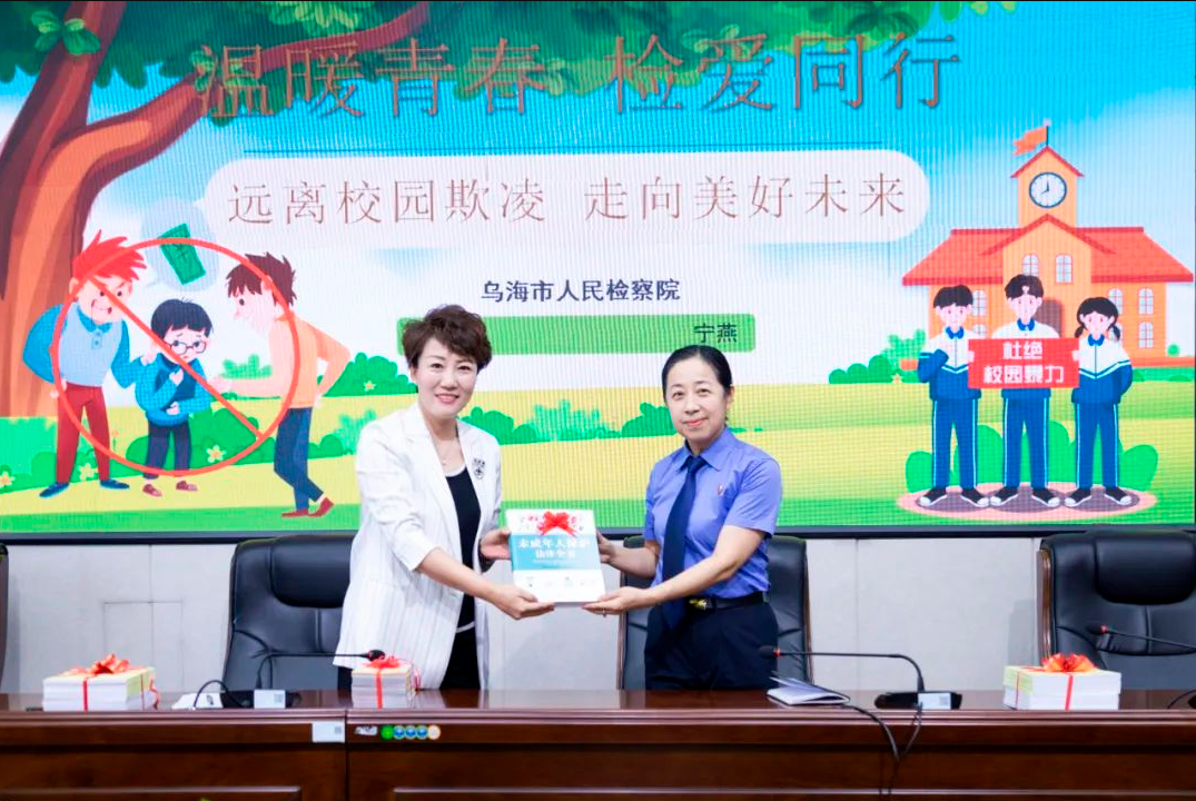 撖莉副检察长还代表市检察院向学校赠送《未成年人保护法律全书》、双语《未成年人法律汇编》、双语《未成年人法治宣传手册》共400余份。
