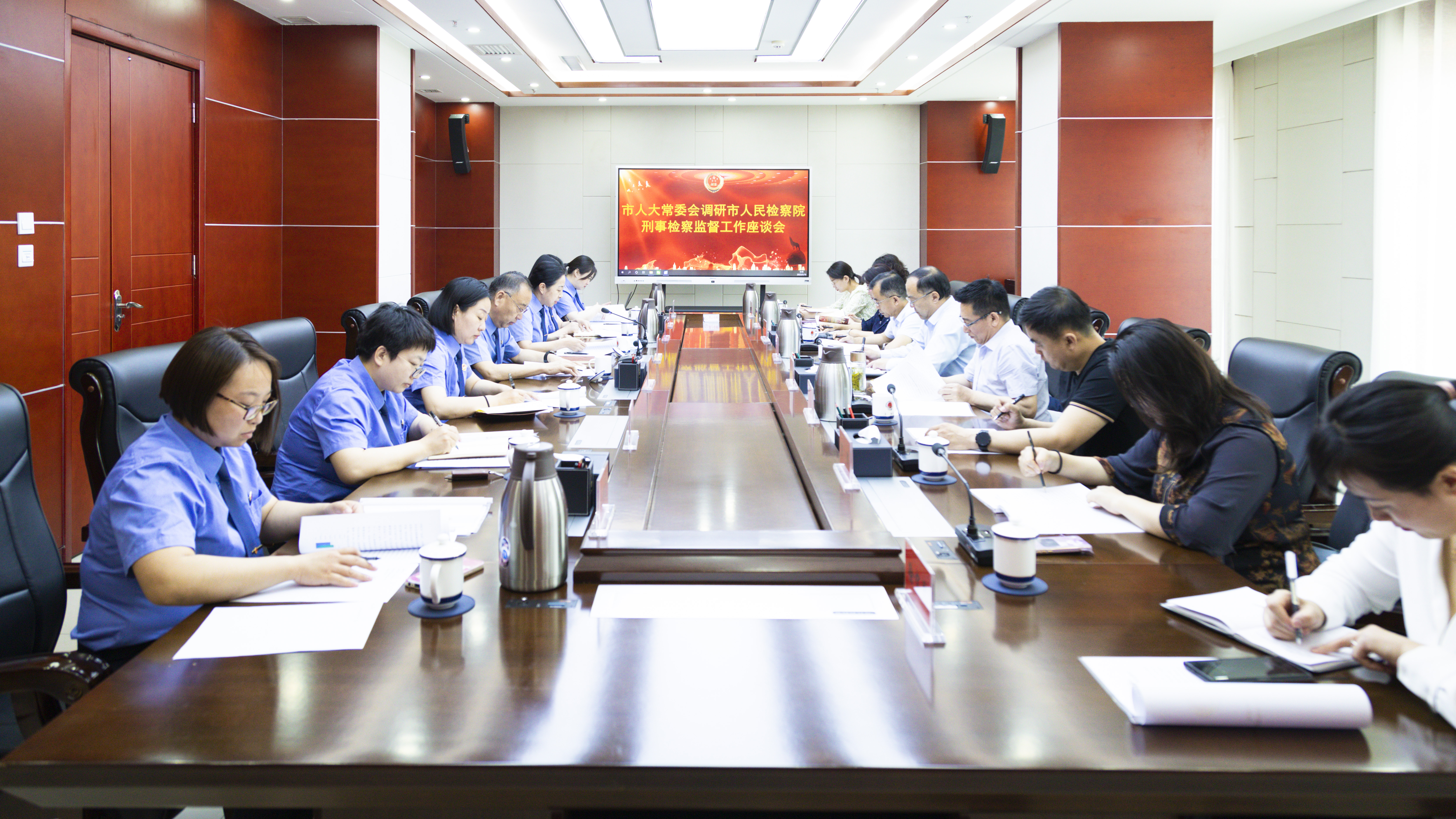 座谈会上,调研组一行观看了检察工作专题片,全面了解全市检察机关近年来在队伍建设、业务工作等方面取得的成效。