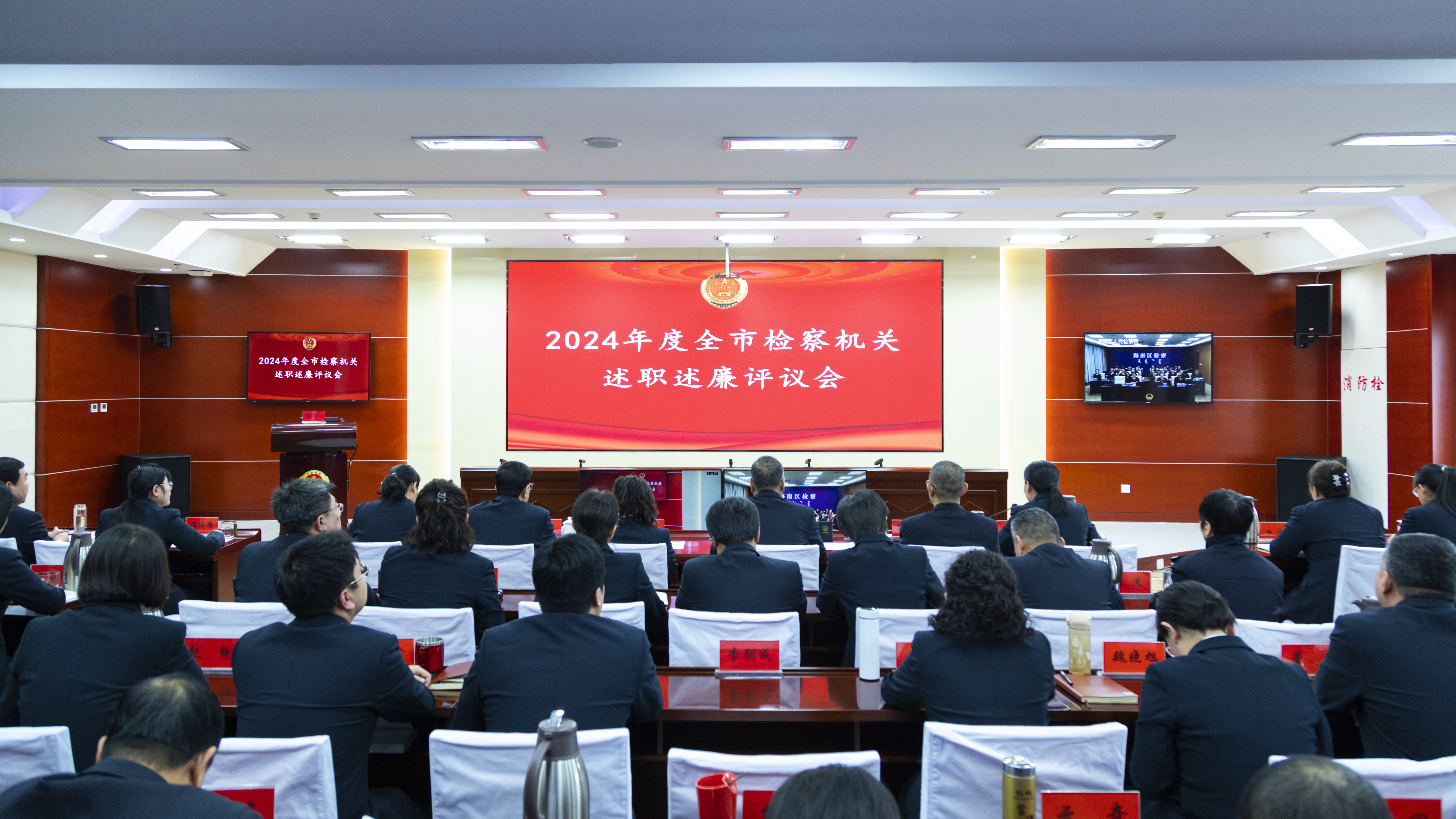 1月10日下午,乌海市检察院召开2024年度全市检察机关述职述廉评议会,会议以视频形式开至基层院,市检察院党组书记、检察长田成君,两级院领导班子成员以及全体检察人员参加会议。