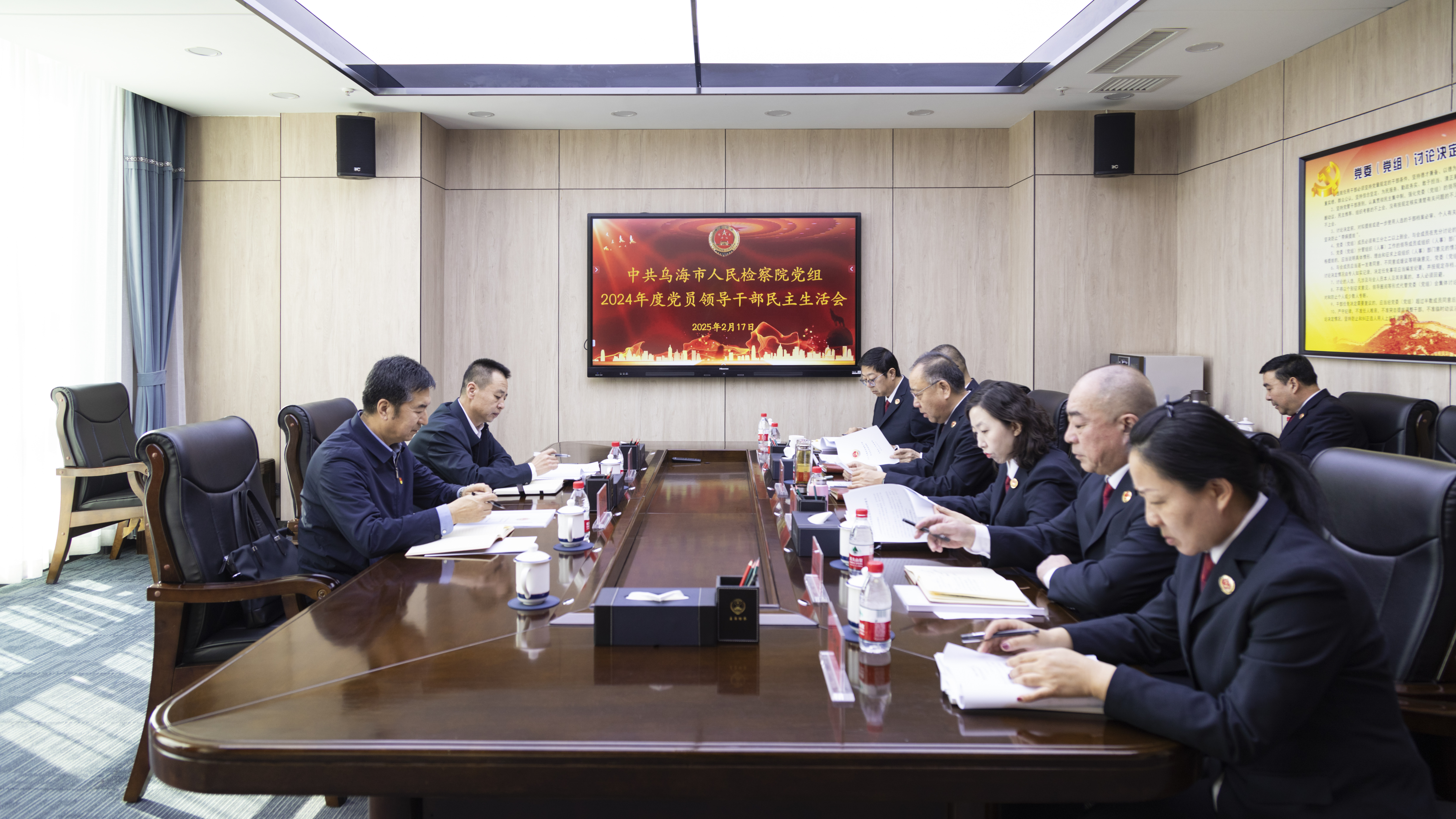 2月17日,乌海市人民检察院党组召开2024年度党员领导干部民主生活会。院党组书记、检察长田成君主持会议并讲话。市委政法委副书记王超群、市纪委监委派驻市中级人民法院纪检监察组组长黄海龙到会指导并做点评。